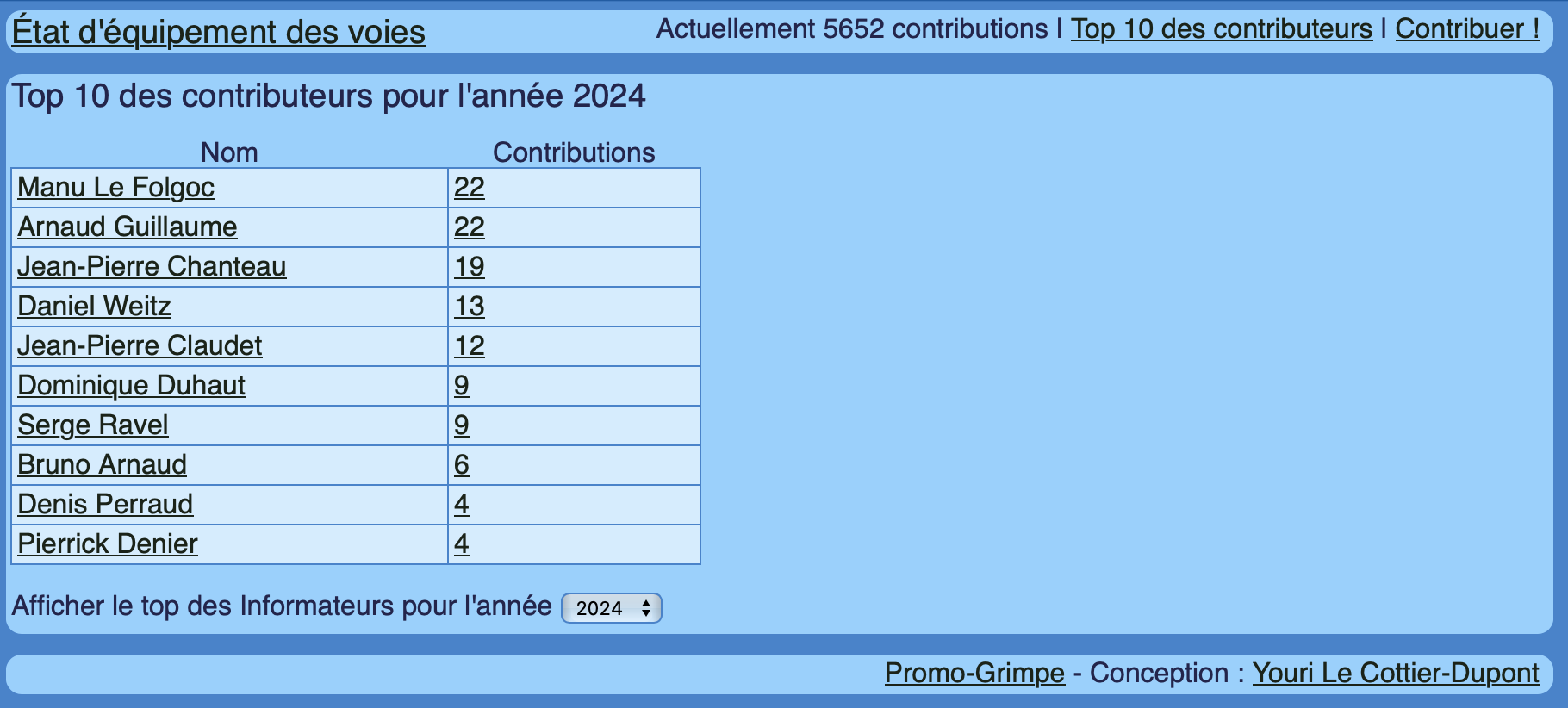 Voici la liste des meilleurs contributeurs pour l’année 2024 avec le nombre de contributions :